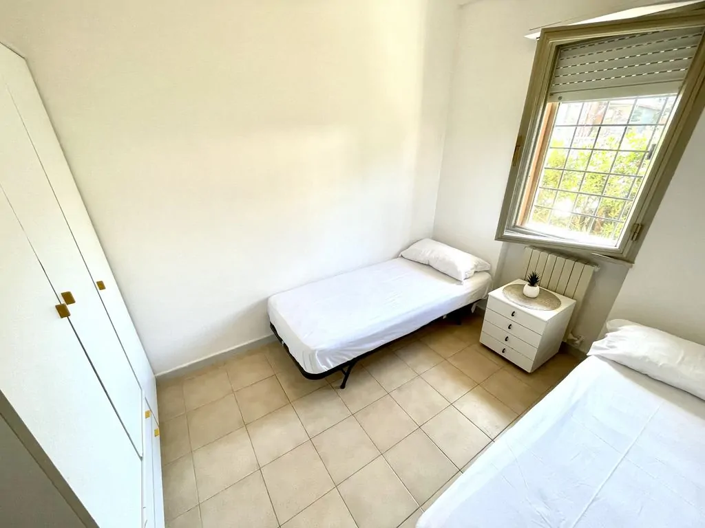 - Composizione: Soggiorno pranzo con divano letto doppio, camera matrimoniale spaziosa e cameretta con due letti singoli.